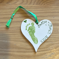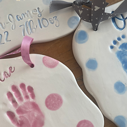 You choose your pottery and we’ll take pro prints from both to big kids and all the details to create your personalised items. This is not a stay and paint session, just 20-30 minutes, then leave your special item/s for us to finish. If you’d like to stay and paint, please book a pottery painting session as well to ensure there is space. You choose the words, the colours & the decoration. Baubles are £20 including ribbon, personalisation, glazing & firing.